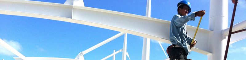(3) 裂紋的修復與加固: 膜布局車棚鋼布局骨架布局因荷載頻頻感化及資料挑選、機關、制作、施工裝置不妥等發生具備擴大性或脆斷偏向性裂紋毀傷時,應想法修復。在修復前,必須闡發發生裂紋的緣由及其影響的嚴峻性,有針對性的接納改良布局現實任務或停止膜布局車棚裝置加固的辦法。對不宜接納修復加固的構件,應予以撤除改換。